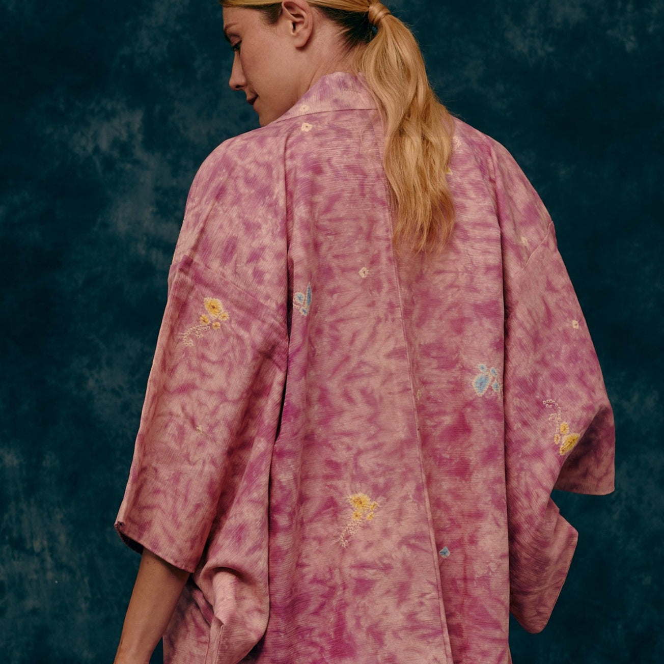 Es importante no lavar tu kimono de seda en casa, ya que la tela podría encoger, transferir o perder su color.